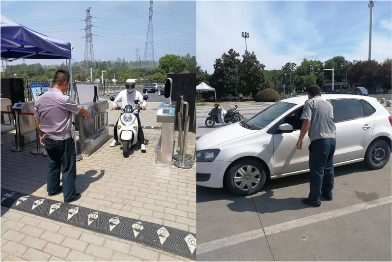 暑假期间,校内各类维修改造工程如期展开,校外施工人员和工程运输车辆频繁出入校园,老师们科研、值班等工作不停歇,作为疫情防控检第一道防线,学校各门岗执勤的安保队员24小时值班值守,当好学校守门人。严格落实疫情防控政策,面对各类入校人员和车辆,依据报备审批要求逐一询问检查,并引导来访车辆有序入校,确保不漏一人,不漏一车,最大限度减少输入性风险。