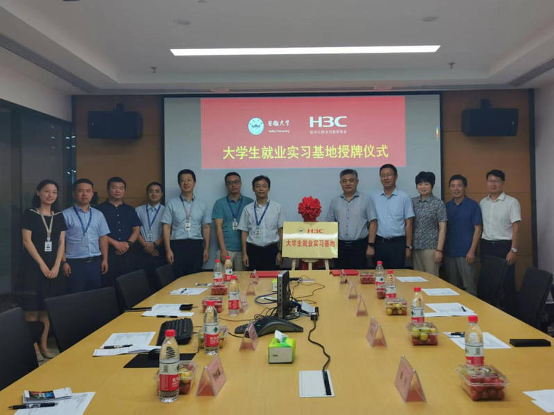 在新华三集团,钱家盛介绍了学校近期的发展建设情况,表示希望与新华三集团在人才培养、科研合作、学生实践等方面进一步强化合作,增进交流。会后,钱家盛与新华三集团研发平台管理部部长王丰恺共同为“安徽大学—新华三集团大学生就业实习基地”揭牌。