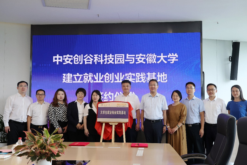 在中安创谷科技园,高清维介绍了学校近年来的建设发展情况,表示希望在人才培养、创新创业、科技成果转化等方面发挥各自优势,促进校企双方更好发展,为合肥战新产业发展提供更大助力。会上,高清维与高新投公司副总经理、中安创谷公司董事长王芳共同为“大学生就业创业实践基地”揭牌。
