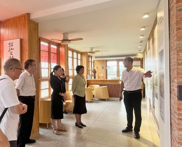 程雁雷一行参观了由安徽农道团队设计、建设、运营的合肥市蜀山区乡村振兴示范区——大麦季原乡酒店和小岭南。安徽农道董事长沈欣介绍了公司发展历程、运营情况、未来规划和岗位要求等情况,并感谢安徽大学在科技赋能乡村产业振兴、生态振兴等方面作出的贡献。程雁雷详细介绍了学校“双一流”的建设情况和发展成果,希望双方加强校企深度融合,构建协同育人长效机制。