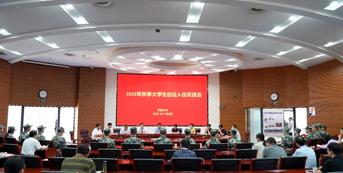 本网讯(融媒体中心 周仲寅)9月5日上午,学校在磬苑校区办公楼B204会议室举行2022年秋季大学生应征入伍欢送会。我校14名同学响应祖国号召,将在实现强军梦的伟大实践中书写绚烂、无悔的青春篇章。校党委常委、副校长高清维出席会议。会议由学生处处长秦楠主持。