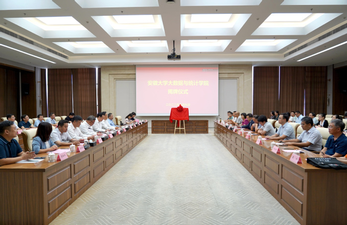本网讯(大数据与统计学院 林志超)9月9日,安徽省属高校首家大数据与统计学院在安徽大学揭牌成立。校党委书记蔡敬民出席会议并讲话。校长匡光力与大数据与统计学院院长吴宗敏共同为学院揭牌。校党委副书记、常务副校长陈诗一主持,校党委常委、纪委书记、监察专员王忠,校党委常委、副校长高清维出席。