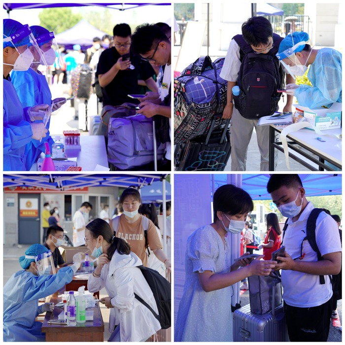 学校在高铁站、火车站、汽车站设立站点,安排教师随班车接新生到校。校园里精心布置的温馨的标语、欢迎的横幅,表达对2022级新同学的热烈欢迎。优化迎新流程,让入学办理更便捷。在校门口迎接新生入校后,第一时间引导至核酸检测点完成检测;安排摆渡车为新生接送行李;设立“绿色通道”,解答资助政策,办理相关手续;设置医疗服务站、志愿服务站等服务平台,为新生提供贴心服务……