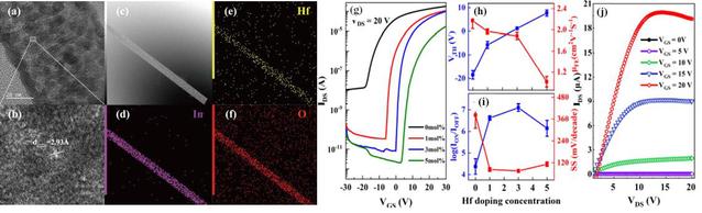 图. InHfO纳米纤维微结构表征及InHfO/SiO2-TFTs的电学特性测试