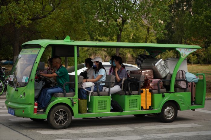 学校安排摆渡车接送新生