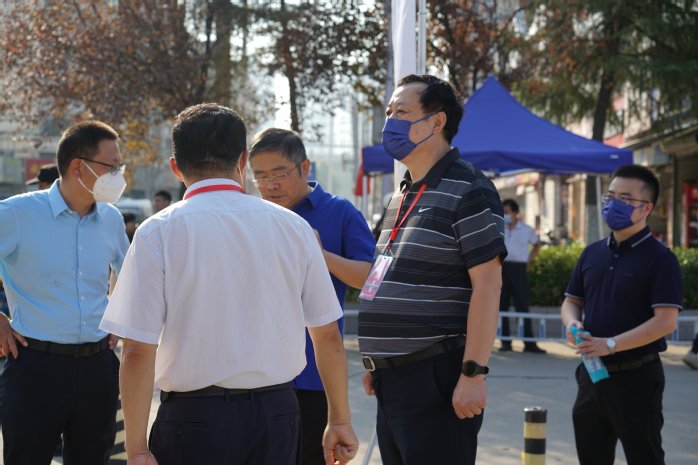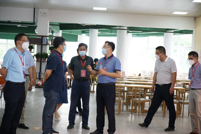 省委教育工委副书记王佩刚(左二)与校长匡光力(左四)实地查看新生学习生活环境