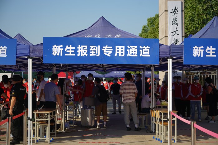 本网讯(宗禾)9月17日,安徽大学2022级研究生新生报到入学。周到的志愿服务、温暖的“红色通道”,校区里充满着浓厚的迎新氛围,让新生刚入学就感受到学校的温情和关怀。