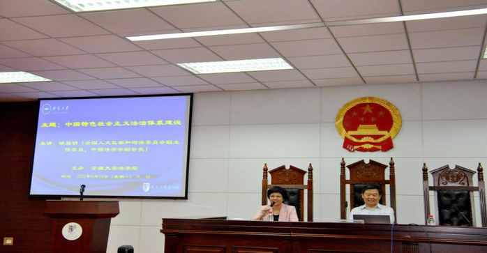 本网讯(法学院)近日,全国人大监察和司法委员会副主任委员、中国法学会副会长徐显明教授在法学院学山模拟法庭作题为“中国特色社会主义法治体系建设”报告。校党委书记蔡敬民会见,校党委常委、副校长程雁雷主持报告会。报告会通过线上与线下相结合的方式开展。