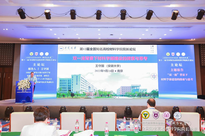 本网讯(材料科学与工程学院 周乾坤)9月24日至25日,第十二届全国知名高校材料学院院长论坛在南京举办。校党委常委、副校长、材料科学与工程学院院长王守国出席,并作大会主题报告。