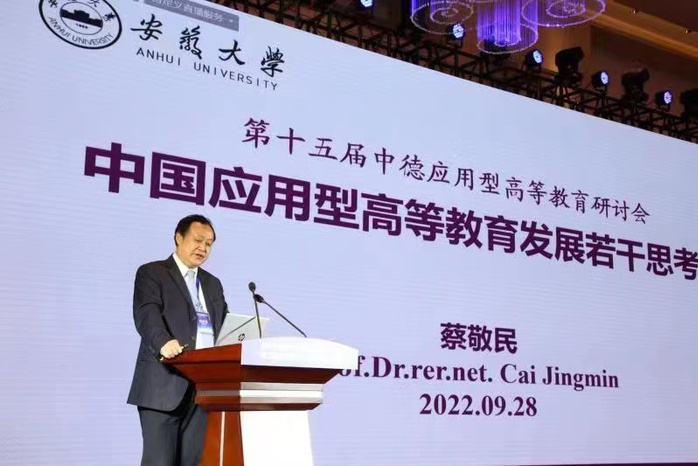 全国政协副主席、中国科学技术协会主席万钢出席并讲话,德国前总统克里斯蒂安·武尔夫、安徽省省长王清宪、德国下萨克森州州长施特凡·魏尔分别致辞。我校党委书记、中国教育国际交流协会应用型高校国际交流分会理事长蔡敬民受邀出席大会,并作《中国应用型高等教育发展若干思考》主旨报告。