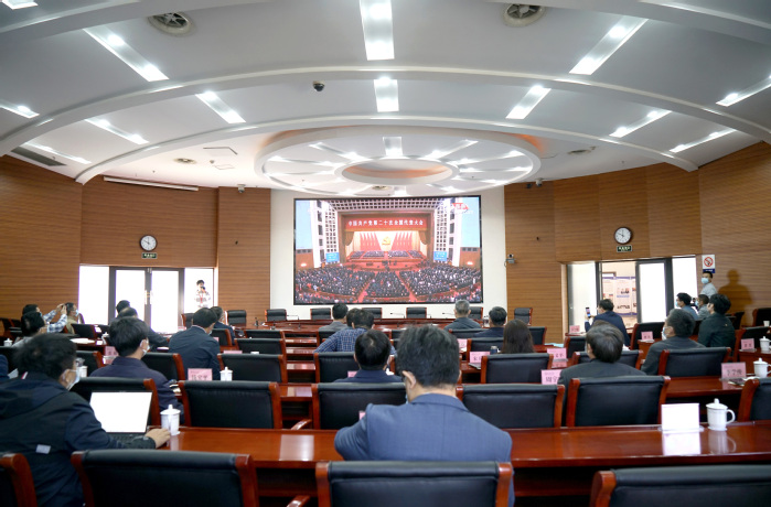 党心连着民心,激情伴随豪情。习近平总书记铿锵有力的语句,代表们激昂热烈的掌声,不仅回响在人民大会堂内,也响彻了安徽大学每一个角落。广大师生纷纷表示,在党的领导下,中国发生了历史性的翻天巨变,取得了全方位伟大成就,展望未来,我们一定始终牢记初心使命,努力为全面建设社会主义现代化国家,全面推进中华民族伟大复兴而团结奋斗。校长匡光力,校党委常委、纪委书记、监察专员王忠,副校长钱家盛,校党委常委、副校长高清维、孙长银、王守国;校党委常委黄志祥;校党委理论学习中心组其他成员在磬苑校区办公楼B204会议室集中收看。