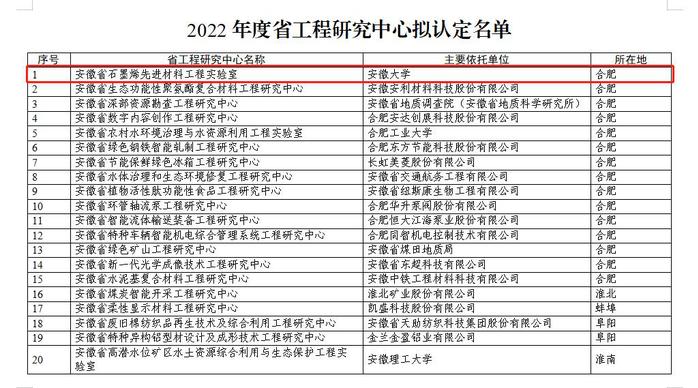 2022年度安徽省工程研究中心评审认定结果公示名单