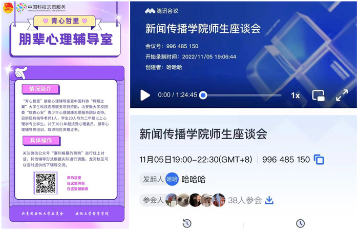 在蜀山校区工作的大数据与统计学院辅导员高寻寻,住校半个月以来,密切关注学生思想动态、抗疫心态和学习状态,组织党团日活动10余次,走访学生宿舍58间,谈心谈话265人次,线上随堂听课23次,召开疫情防控主题班会12次,先后组织开展了“篮球赛”、“足球赛”、“你比划我猜”、“歌曲接龙”、“观红色影片”、“寝室文化设计大赛”等,用一系列活动、一条条举措、一遍遍嘱托、一句句问候化解学生衣食住行难题。