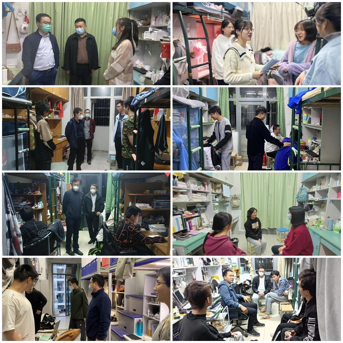 辅导员们走访学生宿舍,给予学生关心与温暖