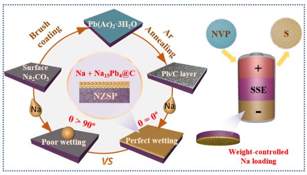 图文摘要:构筑双功能Pb/C中间层助力实现低界面电阻、无枝晶、高钠利用率固态电池
