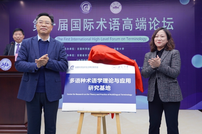 开幕式上,匡光力,我校党委常委、党委宣传部部长赵晓明共同为设立在我校外语学院的“多语种术语学理论与应用研究基地”揭牌。