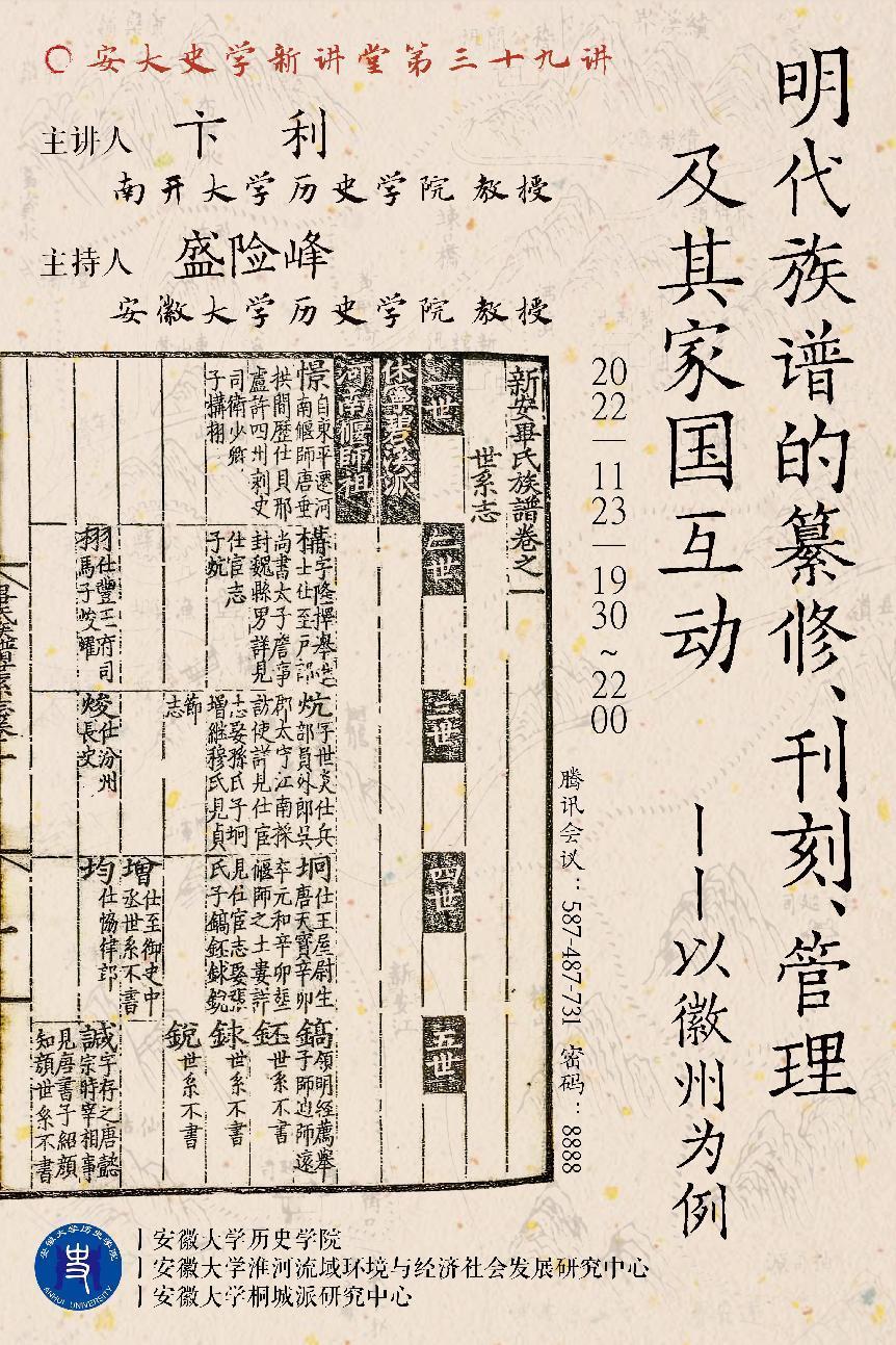 报告题目:明代族谱的纂修、刊刻、管理及其家国互动——以徽州为例