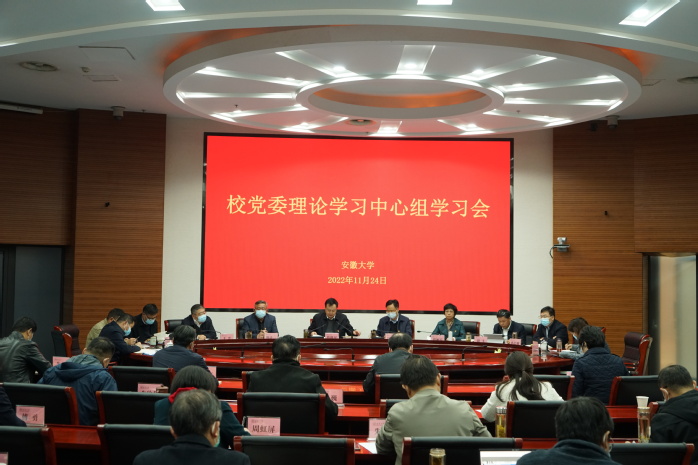 本网讯(融媒体中心 郑敏 周仲寅 赵玉婷)11月24日下午,校党委书记蔡敬民主持召开校党委理论学习中心组学习会,传达学习郑栅洁书记在我校宣讲党的二十大精神报告会上的讲话精神,研究部署学校学习贯彻工作。强调,进一步深入学习贯彻党的二十大精神,牢记郑栅洁书记对我校提出建成“孕育创新成果的高地、集聚拔尖人才的基地、传承优秀文化的阵地”的殷切期望,在培育时代新人上展现更大担当、在推进科技自立自强上实现更大突破、在培养造就一流人才上发挥更大作用、在提高办学质量上取得更大成效,奋力在全国高校中争先进、创一流,争当促进安徽物质文明建设的“生力军”、精神文明建设的“先锋队”。