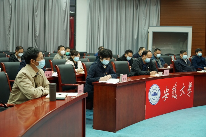 蔡敬民指出,学习宣传贯彻党的二十大精神,是当前和今后一个时期的首要政治任务。党的二十大召开以来,校党委多次召开党委常委会会议、中心组学习会、全校传达学习大会,印发了《安徽大学学习宣传贯彻党的二十大精神的总体方案和任务清单》,迅速兴起学习宣传贯彻热潮,带动全校各级党组织、全体党员,深刻领悟“两个确立”的决定性意义,增强“四个意识”、坚定“四个自信”、做到“两个维护”。