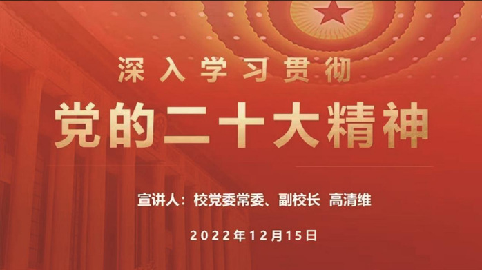 2022年12月15日下午,校党委常委、副校长高清维为物理与光电工程学院党员师生作学习贯彻党的二十大精神专题宣讲会。宣讲会采取线上会议方式进行。高清维指出,要深刻领会党的二十大的重大意义,准确把握党的二十大精神实质。他围绕党的二十大的重大意义、过去5年的工作和新时代10年的伟大变革、全面建设社会主义现代化国家的战略部署、马克思主义中国化时代化、中国式现代化、全面建设社会主义现代化国家的目标任务、坚持党的全面领导和全面从严治党等方面,对党的二十大精神作了系统梳理和全方位解读。他要求学院师生要将党的创新理论进校园、进课堂、进头脑,坚定不移听党话、跟党走。要深刻领悟“两个确立”的决定性意义,坚定地把“两个确立”“两个维护”作为最高政治原则和根本政治规矩,全面贯彻习近平新时代中国特色社会主义思想,始终在思想上政治上行动上同以习近平同志为核心的党中央保持高度一致,奋进新征程,建功新时代。