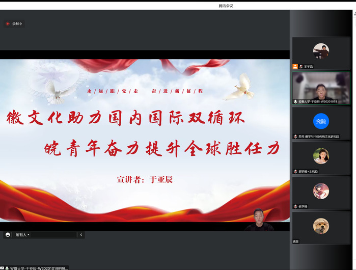大学生宣讲团成员结合自身实际,选择不同的侧重点,分组进行集体备课。第二组宣讲团成员分别以《团结奋发向未来 凝心聚力促发展》《天下徽商 共助“徽”煌》《徽文化助力国内国际双循环 皖青年奋力提升全球胜任力》等主题,深入各学院开展宣讲。