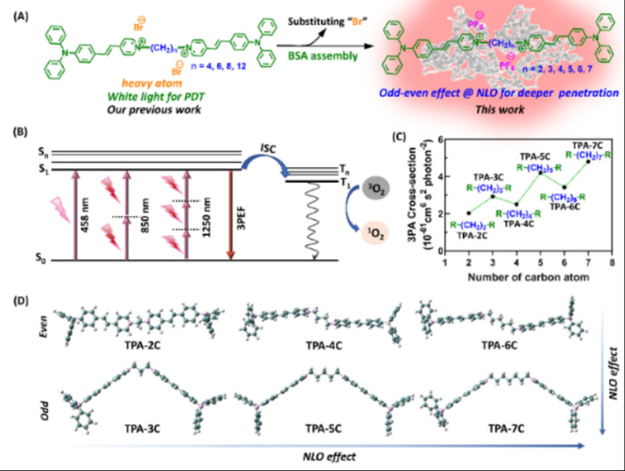 本网讯(化学化工学院)有机光敏剂在光照下将周围的底物(如O2、H2O等)转化为活性氧物种,可应用于肿瘤治疗。其中,分子内结构调节、分子间相互作用对光敏剂的光物理光化学性质有着重要的影响,如何明晰其构效关系并研制高效光敏剂是该领域的研究热点之一。近期,我校化学化工学院周虹屏教授课题组在光敏剂研制及应用方面取得了系列研究进展。