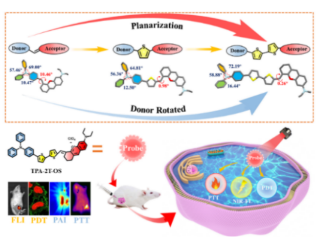 (4)“Simultaneous One-step Regulation of Planarization and Donor Rotation to Enhance Multi-modal Imaging Guided Therapy”,《Materials Chemistry Frontiers》(英国皇家化学会,IF = 8.683, Mater. Chem. Front. 2022, 6, 2921)。共同第一作者:张屹泽 王君君;通讯作者:周虹屏;安徽大学为唯一通讯单位。