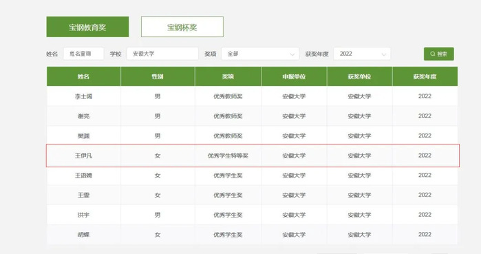 2022年度“宝钢优秀学生特等奖”获奖名单