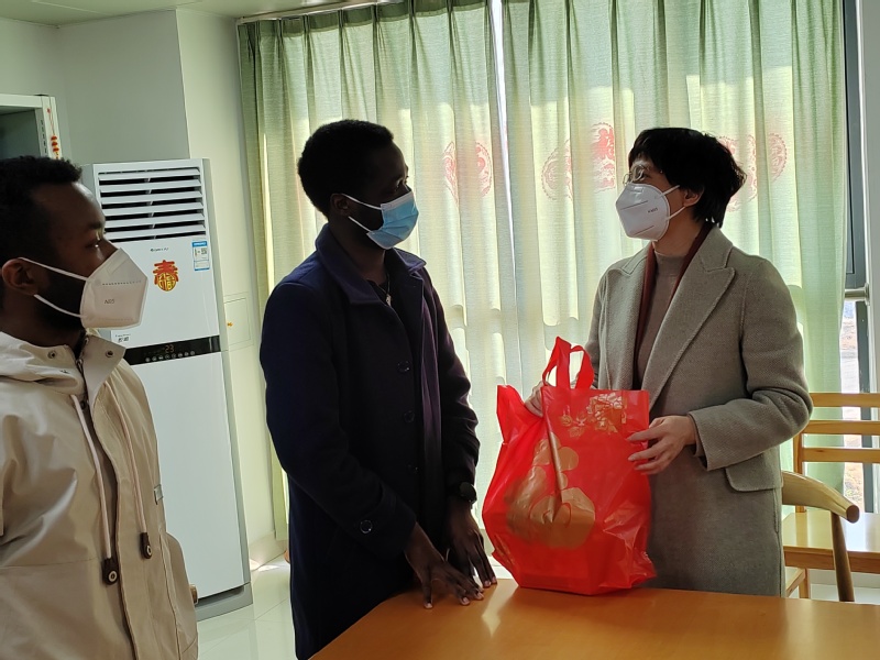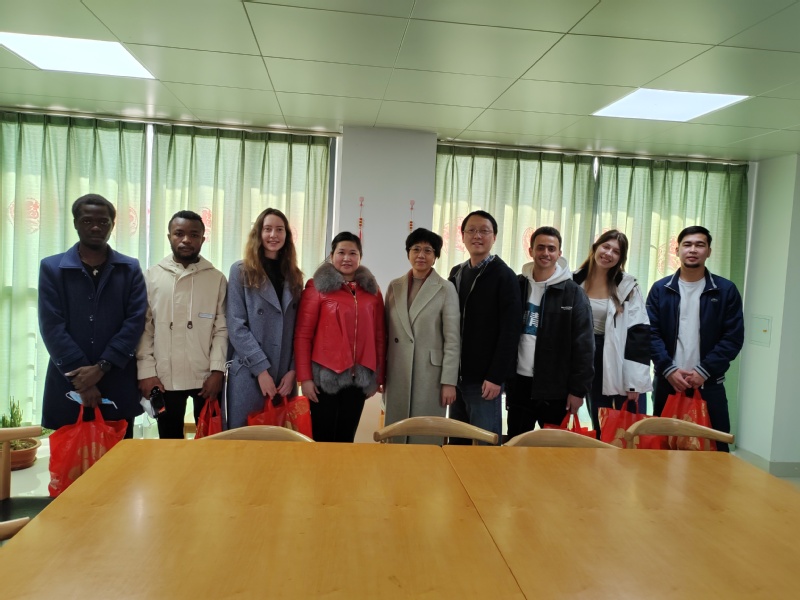 程雁雷详细了解了大家的日常生活、学习和健康状况,同时代表学校向同学们送去了新春的祝福,并请他们向自己的家人转达学校的问候。程雁雷表示,学校时刻牵挂着留校的同学们,假期将一如既往地为大家提供必要的生活保障与服务,留校期间如遇困难可随时向老师报告,学校将及时予以解决;希望大家能合理安排假期的学习和生活,加强体育锻炼,保持健康体魄;在做好个人防护、保证安全的基础上,多走出校园感受中国春节的节日气氛,度过一个平安、祥和、健康的寒假。活动最后,程雁雷向国际学生们送上了精心准备的慰问品并同大家合影留念。