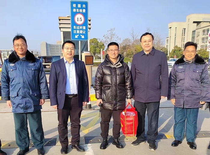 周飞(左二)看望慰问史河路校区、泗州路校区与学校科技园值班人员