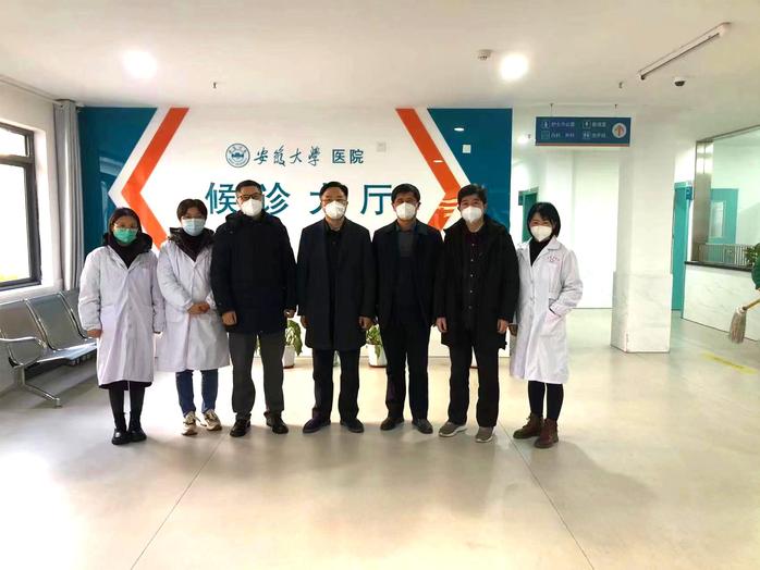 匡光力(左四)看望慰问龙河校区与蜀山校区值班人员