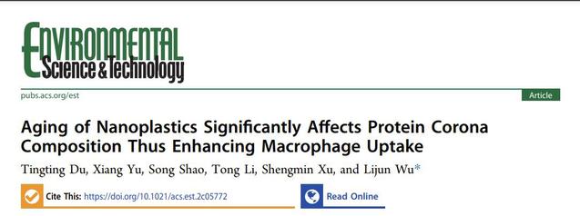 本网讯(物质科学与信息技术研究院 吴李君) 近日,环境领域国际顶级期刊《Environmental Science & Technology》以Supplementary Cover的形式,在线发表了安徽大学物质科学与信息技术研究院环境所杜婷婷副教授、吴李君教授等题为“Aging of Nanoplastics Significantly Affects Protein Corona Composition Thus Enhancing Macrophage Uptake”的研究成果。