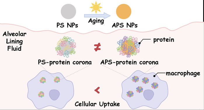 随着塑料污染日益严重,纳米塑料作为新兴污染物,因其具有潜在人体健康风险而引起越来越多的关注。纳米塑料进入人体,其表面会形成蛋白冠,进而影响纳米塑料在体内的生物活性和命运。然而,一旦纳米塑料进入环境,环境老化是一个不可避免的过程,它如何影响纳米塑料上蛋白冠的形成仍不清楚。该项研究考察了光照老化对聚苯乙烯纳米塑料在人支气管肺泡灌洗液(BALF)中形成的蛋白冠的影响。研究发现,聚苯乙烯纳米塑料表面BALF蛋白冠中蛋白质的种类和丰度都因老化而发生改变。同时,与原始的聚苯乙烯纳米塑料相比,老化的聚苯乙烯纳米塑料更亲水、电负性更低,造成带负电荷更多亲水性更强的蛋白质的吸附量增加。此外,老化引起的BALF蛋白冠的改变增强了肺巨噬细胞J774A.1通过吞噬作用和网格蛋白介导的内吞作用对老化聚苯乙烯纳米塑料的摄入。该项研究强调了环境老化过程在纳米塑料的生物安全评估中的重要性。