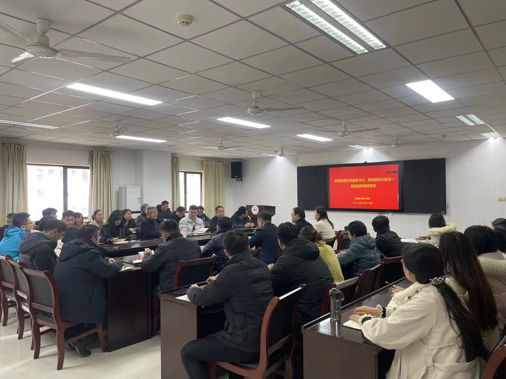 本网讯(大数据与统计学院 林志超) 2月16日下午,校党委副书记、常务副校长陈诗一赴大数据与统计学院调研,指导新学期有关工作。