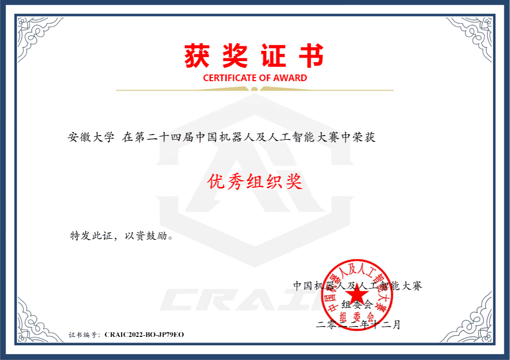 本网讯(人工智能学院 宋军)近日,第二十四届中国机器人及人工智能大赛“优秀组织单位”名单公布,我校荣获“全国优秀组织奖”。 我校首次组织参加该项赛事,共获得两项全国一等奖和两项全国二等奖的的优异成绩。