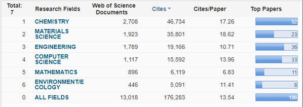 本期环境/生态学全球进入前1%机构1695所,我校排名1613位。至此,我校共有化学、材料科学、工程、计算机科学、数学和环境/生态学六个ESI前1%学科。