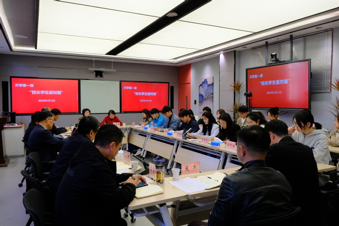 “校长学生面对面”活动环节,学生代表围绕教育教学、课程设置、心理健康教育、不同校区办学、住宿条件、电影院线、团学活动、就业等具体问题提出意见和建议。学校相关单位负责人一一予以答复。