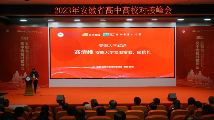 高清维向出席峰会的嘉宾表示欢迎,介绍了安徽大学的历史、人才培养、师资力量、社会服务、“双一流”建设成果等情况。他说,长期以来,安徽大学高度重视与中学之间的沟通和联系:选派优秀教师走进中学校园,开展科普讲座、心理健康辅导,讲授素质教育课程;组织在校大学生回中学母校,开展社会实践和本科招生宣传;对口帮扶两所县级中学,与省内外200余所中学签订合作协议,共建优质生源基地。学校聚焦国家重大战略和地方经济社会发展,坚持“服务安徽、立地顶天、开放合作、融合发展”的办学思路,调结构、转功能、增体量、提质量,大幅增加省内招生计划,努力满足更多省内学子在家门口上“双一流”大学的美好愿望。面对高考综合改革带来的挑战,中学和大学应强化协同,努力做好中学教育和大学教育之间的衔接。希望大家集思广益、畅所欲言,提出真知灼见,为全面提高人才培养质量建言献策。我校将全力做好服务,保障会议顺利举行。
