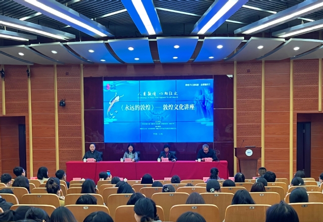 敦煌研究院名誉院长樊锦诗通过视频形式寄语“敦煌文化进校园”系列活动,敦煌研究院郭小丹教授从历史渊源、地理形胜、文明遗迹、文物保护等角度详细介绍了敦煌文化的传承与发展。