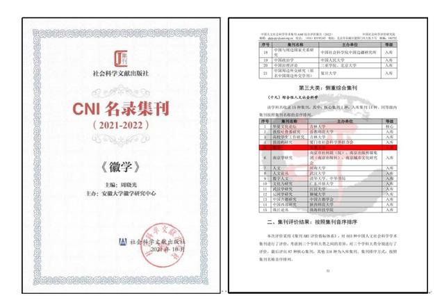 本网讯(徽学研究中心)近日,由中国社会科学评价研究院主办的第十届全国人文社会科学评价高峰论坛暨期刊评价报告发布会在北京成功举行。本次论坛正式发布了《中国人文社会科学期刊AMI综合评价报告(2022年)》《中国人文社会科学集刊AMI综合评价报告(2022年)》,公布人文社会科学核心期刊、集刊评选结果。教育部人文社会科学重点研究基地安徽大学徽学研究中心主办的学术刊物《徽学》入选中国人文社会科学AMI集刊。