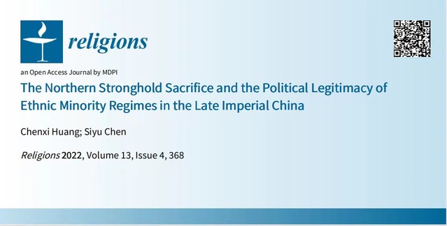 本网讯(人文社会科学处)哲学学院教师黄晨曦博士作为通讯作者和第一作者在国际著名期刊Religions上发表英文学术论文“The Northern Stronghold Sacrifice and the Political Legitimacy of Ethnic Minority Regimes in the Late Imperial China”。Religions是国际重要的开源英文学术期刊,该刊在人文研究和宗教学领域具有重要影响力。
