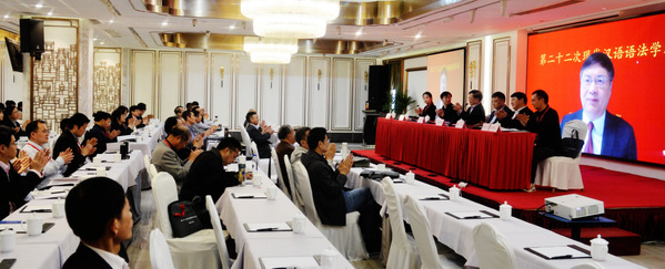 中国社会科学院语言所所长张伯江教授致辞,对会议主办方安徽大学表示感谢,回忆现代汉语发展历程,指出现代汉语语法学术会议承载着青年学者的愿望,以及救亡图存的强烈史命感。