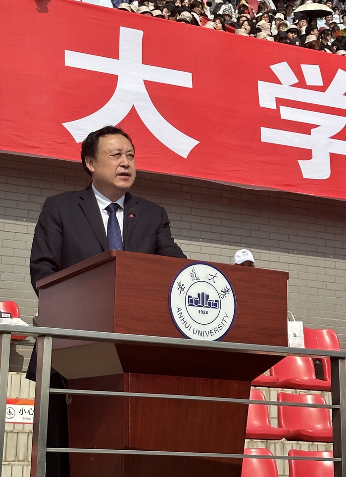 本网讯(融媒体中心 江旭)四月磬苑,蓝天白云和跑道交相辉映!广为期待、备受瞩目的安徽大学第59届田径运动会,4月20日上午,在磬苑校区主体育场举办。校党委书记蔡敬民致开幕词并宣布安徽大学第59届田径运动会开幕!校党委常委、副校长周飞主持开幕式。校党委常委、纪委书记王忠,校党委常委、副校长高清维、孙长银、王守国出席。