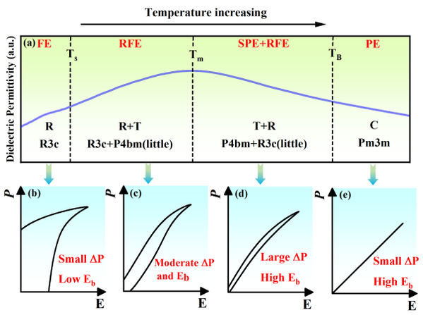 2.“超顺电+多相共存”提高无铅陶瓷的储能性能