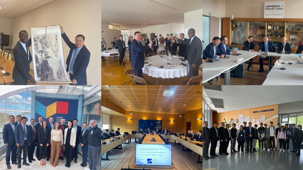 在法国,代表团访问了贝桑松工程师学院、弗朗什孔泰大学,参观调研了弗朗什孔泰大学语言中心。代表团还与我校在法交换学生亲切座谈,调研了解大家在法期间的学习生活情况和亟待解决的问题,勉励他们好好学习。贝桑松工程师学院校长帕斯卡·瓦拉克等人与代表团就持续深化合作开展深入交流。弗朗什孔泰大学校长沃诺罗夫教授与代表团亲切会谈,中国驻斯特拉斯堡总领事潘昱旻出席会谈。蔡敬民希望双方以各种形式开展合作,共同促进安徽省与勃艮第弗朗什孔泰大区的友好省区关系。潘昱旻总领事对安徽大学对法合作工作表示高度认可并支持。在特鲁瓦技术大学,双方深入探讨了中法工程师学院培养模式和学制、入学标准及选拔办法等问题,就中法两国高等教育体系异同及中法教育研究合作质量提升等问题进行了广泛交流。