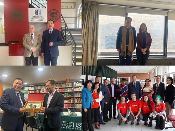 在智利,代表团首先到访中外语言交流合作中心拉丁美洲中心。中心主任罗伯特建议在语合中心框架下发展更多更好的合作关系,探索大规模国际合作教学模式。蔡敬民表示,安徽大学高度重视国际交流与合作,可以从语言入手,促民心相通,不断克服困难和挑战,发展新的合作模式。在圣托马斯大学总部,圣托马斯大学孔子学院中方理事长蔡敬民、中方理事胡学文、外方理事长罗伯特、外方理事佩拉诺出席了2023年孔子学院理事会,听取了孔子学院外方院长李莲和中方院长鲁正凤的年度工作汇报、下一步工作计划以及年度预算,充分肯定了圣大孔院的工作成效并批准了孔院的2023年度预算。随后,代表团与圣托马斯大学校长克劳迪娅·佩拉诺进行亲切友好的交谈,双方擘画在科技、对接产业及学生交流方面的合作蓝图并期待在更多领域开展互动交流。代表团还参加了圣托马斯大学孔子学院开放日活动并与孔院学生亲切交流。