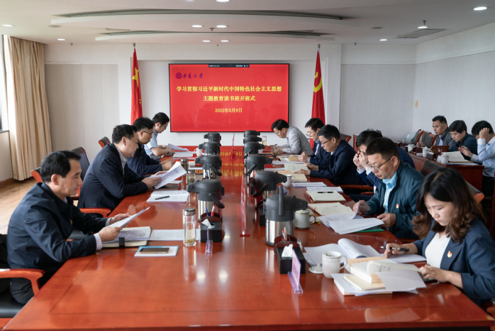 本网讯(宗禾)开展学习贯彻习近平新时代中国特色社会主义思想主题教育是今年党的建设的重大任务。根据中央和省委关于主题教育的部署要求,学校党委分阶段集中举办学校领导班子读书班。读书班以集中自学为主,分3个阶段7天进行,采取领学、分组讨论、集中研讨等方式,全面系统学习领会习近平新时代中国特色社会主义思想。5月8日上午,读书班举行开班式暨第一次集中学习。校党委书记蔡敬民作动员讲话并领学习近平总书记有关主题教育系列重要讲话。校长匡光力,校党委常委、副校长周飞、高清维、孙长银、王守国出席。校党委常委黄志祥、赵晓明出席,校主题教育领导小组办公室成员参加。省委第十巡回指导组副组长夏智明列席指导。