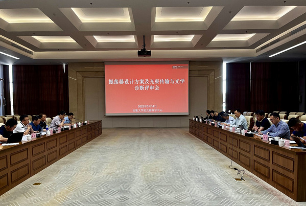 本网讯(安徽大学强光磁科学中心)5月14日上午,安徽大学“强光磁试验装置”振荡器设计方案及光束传输与光学诊断评审会在磬苑校区材料科学大楼举行。校长匡光力致辞,中国工程院院士何多慧、中国工程物理研究院应用电子研究所副所长杨兴繁研究员、清华大学黄文会教授等七位评审专家出席会议。此次会议的召开,标志了该大科学工程又扎实向前推进了一步。