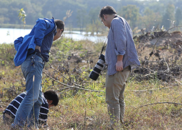 陈众(右一)、许仁鑫(中间)在野外进行生物多样性调查