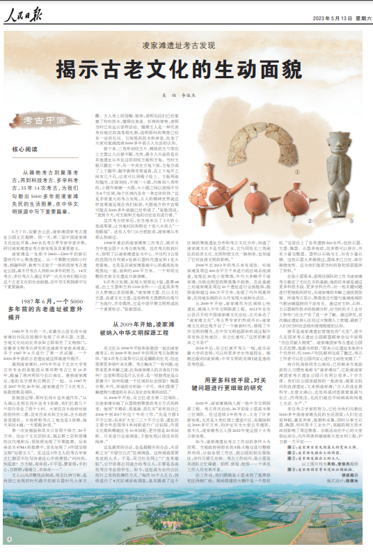 本网讯(融媒体中心 江旭)近日,人民日报以题为《凌家滩遗址考古发现——揭示古老文化的生动面貌》的专题报道,细致讲述了凌家滩遗址从默默无闻到成为现在国家级考古遗址公园的来龙去脉,阐明了凌家滩遗址对我国考古工作和中华文明探源工程的重要意义和特殊地位,并高度评价了曾是凌家滩遗址考古工作的领队、现任教于安徽大学的吴卫红老师及其对“凌家滩文化”的贡献。